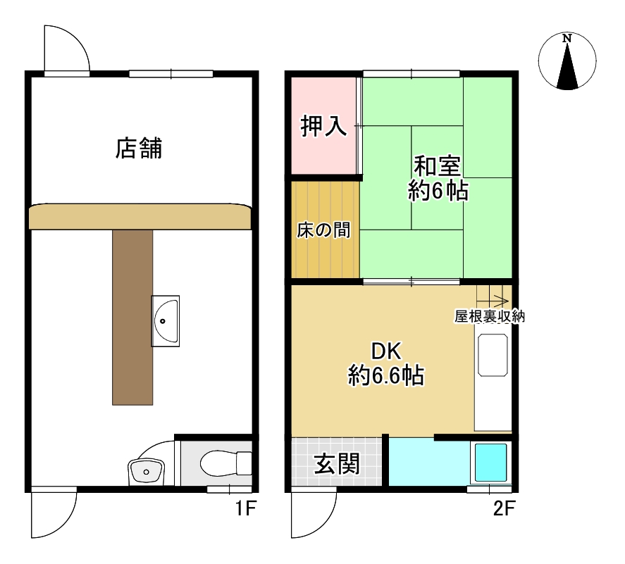 ■1階店舗部分のみ使用の場合の賃料が税込55,000円です。2階を物置や住居使用される場合は別途貸主と相談になります。