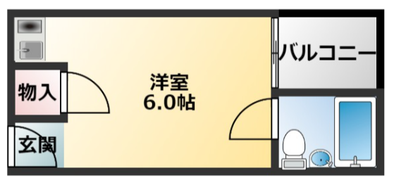 バス・トイレ同室/都市ガス/バルコニー/フローリング/物入/